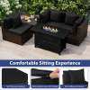 • Premium Materials: Crafted with high-quality PE rattan, this outdoor set is fade-resistant as well as built to last. The heavy-duty metal frame ensures stability. Moreover, the surface is water-proof for easy cleaning. Just enjoy long-lasting quality of our outdoor furniture!
