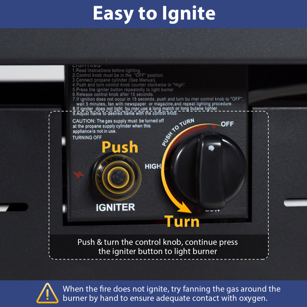 • Effective 2-in-1 Firepit Table: Elevate your outdoor experience with a 60,000 BTU firepit table. When not in use, the table can transform into a stylish coffee table with lid. High-quality metal table top makes this table is not only fire-proof but also scratch resistant for long-time use.