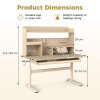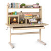 Thanks to the hand-cranking system, you can adjust the height according to kid's height. The desktop can tilt up to 60 degrees, making it comfortable for kids to study, read, or draw. To keep essential supplies organized, the writing table is designed with the top shelf, pen holder, tray, partition drawer, and bookshelves. Moreover, the retractable book stand can be used for supporting open textbooks or tablets. The built-in scale ruler allows kids to easily measure. The robust widened legs and adjustable foot pads keep the table steady and stable. Furthermore, the reinforced crossbar enhances the overall strength. The rounded corners ensure safe use.