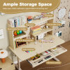 Ample Storage Space: The top shelf, wide desktop, partition drawer, and built-in bookshelves provide enough space to store kids' books, toys, and stationery. The removable pen holder and tray keep kids' markers organized and accessible. Kids can also hang more sundries on the pegboard.