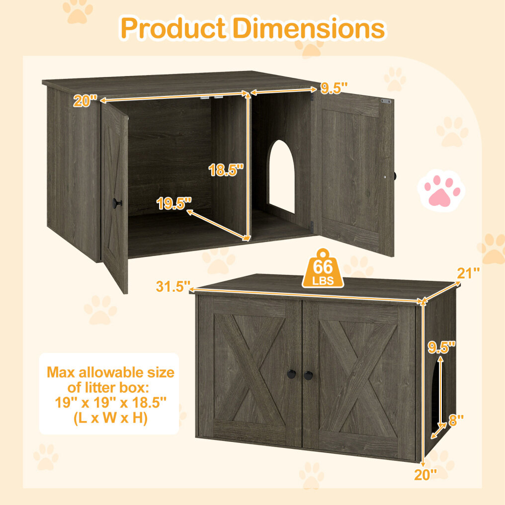 ● Effortless Maintenance & Setup: The wooden cabinet with double doors makes scooping and cleaning a breeze, while the straightforward assembly process - with clearly illustrated instructions - means you'll have a tidy and stylish cat corner ready in no time.