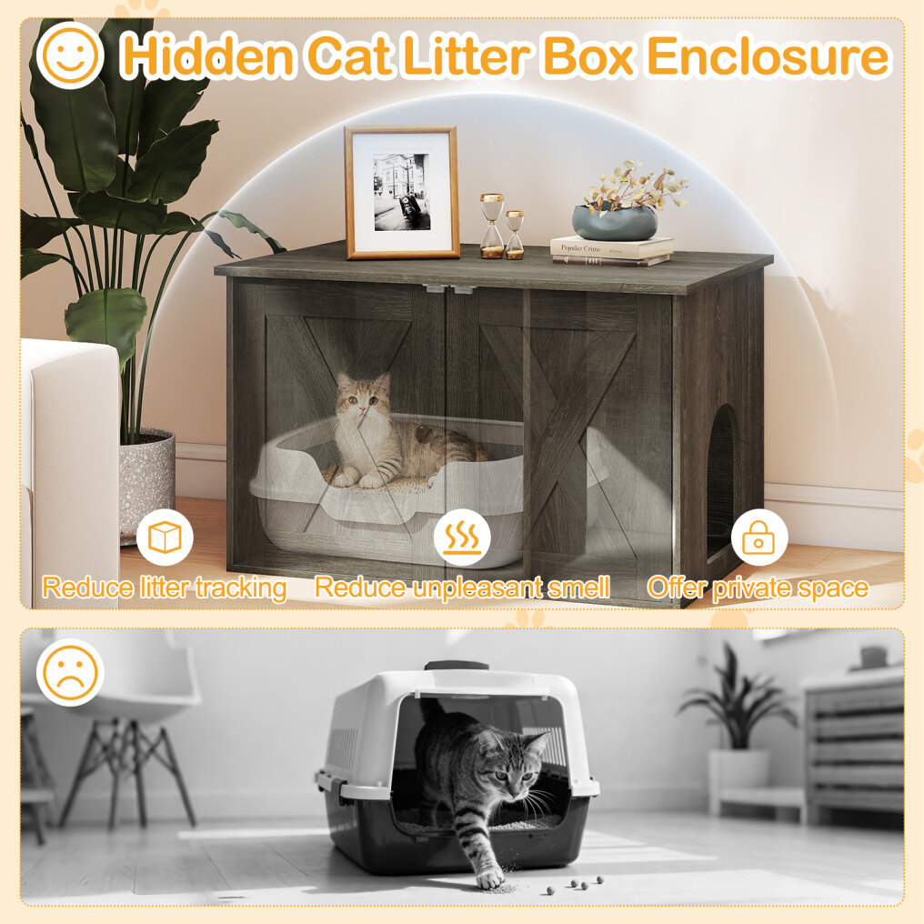 ● Privacy Protection: Thanks to its discreet structure, this hidden cat litter box enclosure effectively reduces unpleasant smells, reduces litter tracking while offering private space where your pet can relax away from prying eyes - making your whole home fresher and tidier.