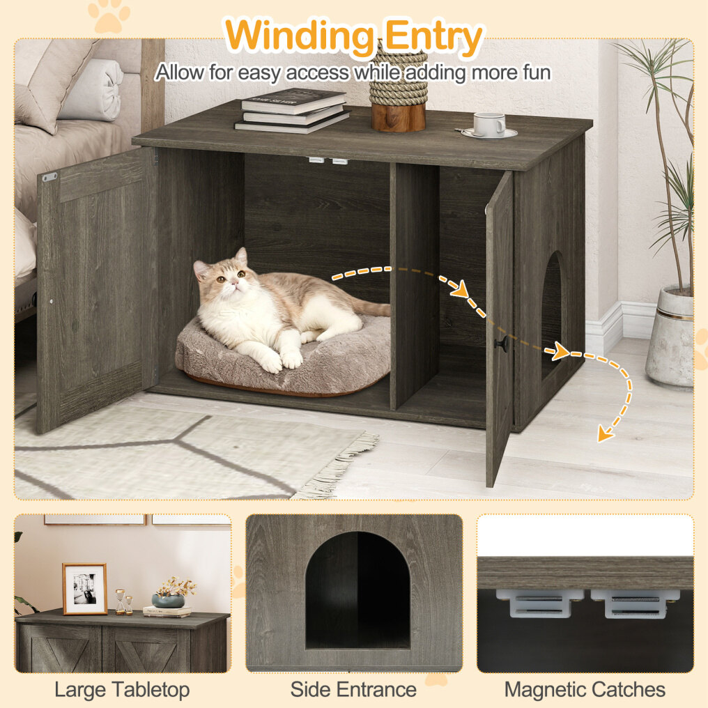 ● Important Size Notice & Playful Entry: The adaptable interior with a divider accepts most litter boxes up to 20" x 19.5" x 18.5" (L x W x H). The smart design features a winding entry that allows for easy access while adding more fun. Note: Please measure your current litter box before purchase to ensure a proper fit and optimal comfort for your pet.