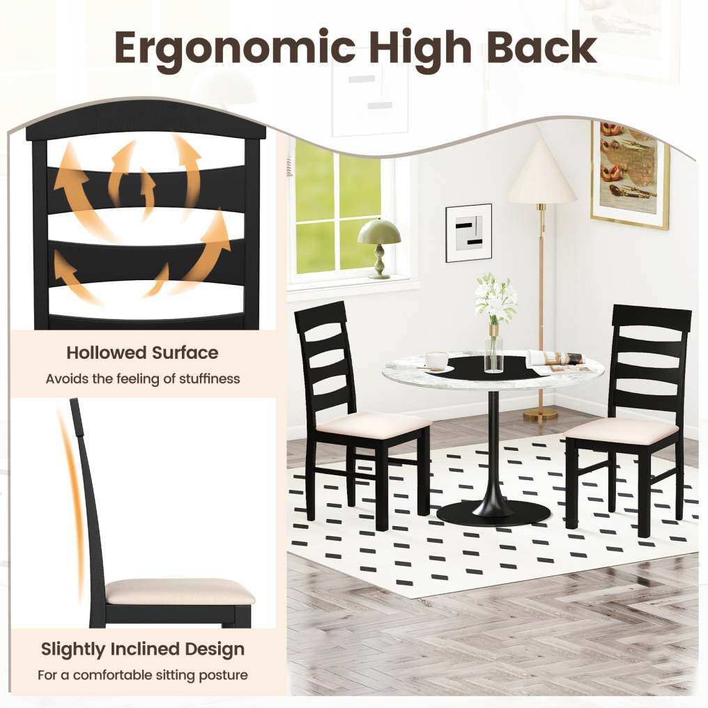 ● Ergonomic High Back: Experience exceptional comfort with the dining chair set's high backrest, carefully crafted with a hollowed surface and a subtle incline. This design supports your back, promotes good posture, and allows for excellent breathability.