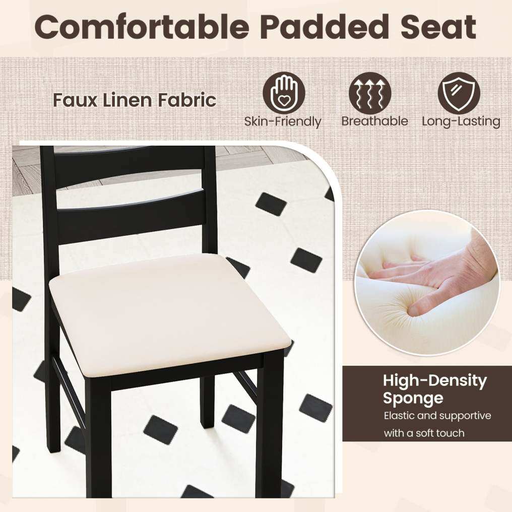 ● Luxurious Padded Seat: The seat is upholstered in high-quality faux linen fabric and filled with elastic sponge padding. The dining room chair set offers plush, cushioned comfort every time you sit.