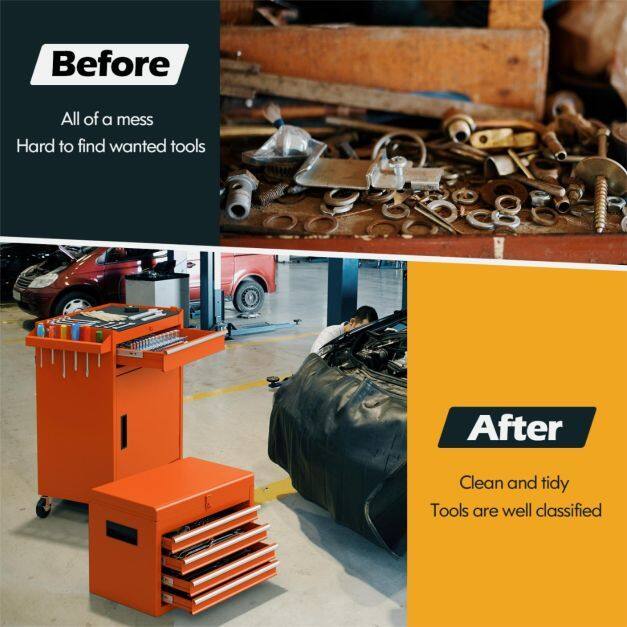 ● Keep Tidy and Save Time: With this toolkit, your scattered tools can be stored in an orderly manner, which can not only make your workroom neat, but also make it easy for you to find the job you want. More importantly , 5 drawers are equipped with slide rails, which make the drawers pull out smoothly and operate smoothly.