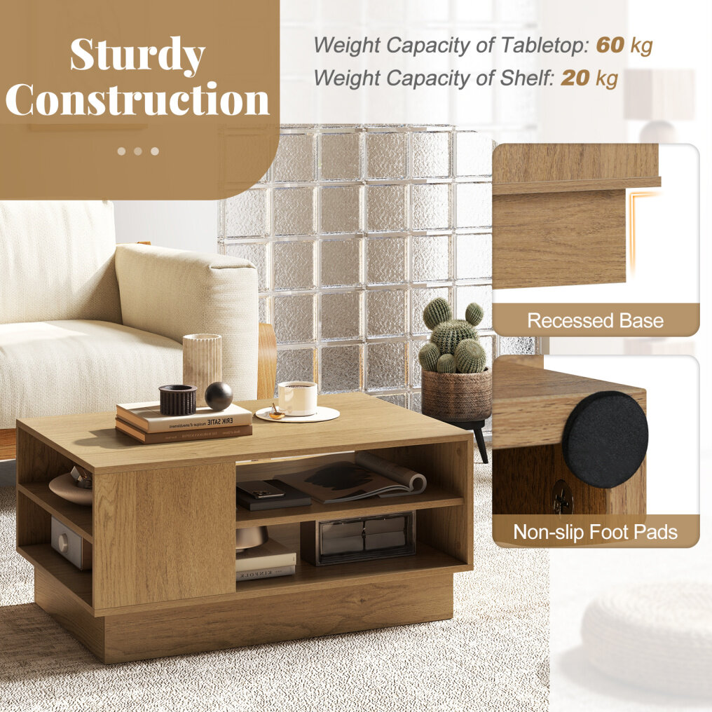 Recessed Base Design: The coffee table features a thoughtful recessed base design that prevents the common problem of bumping or hitting your feet on the table base, making it a safer choice for busy households.