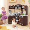 Make a Cup of Coffee: The corner play kitchen features a simulated coffee machine that comes with equipped coffee accessories. This allows kids to enjoy the fun of pretending to make a cup of coffee. ① Choose a flavor. ② Grind coffee beans. ③ Turn the filter. ④ Enjoy coffee.