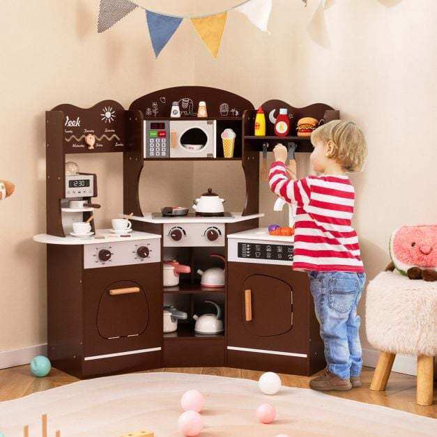 Perfect Gift for Children: Featuring a splinter-free surface and rounded edges, this corner play kitchen creates a safe role-playing environment for little ones. It complies with EN71 and CPSIA for added reliability, serving as a reliable gift for boys and girls aged 3+ years old.