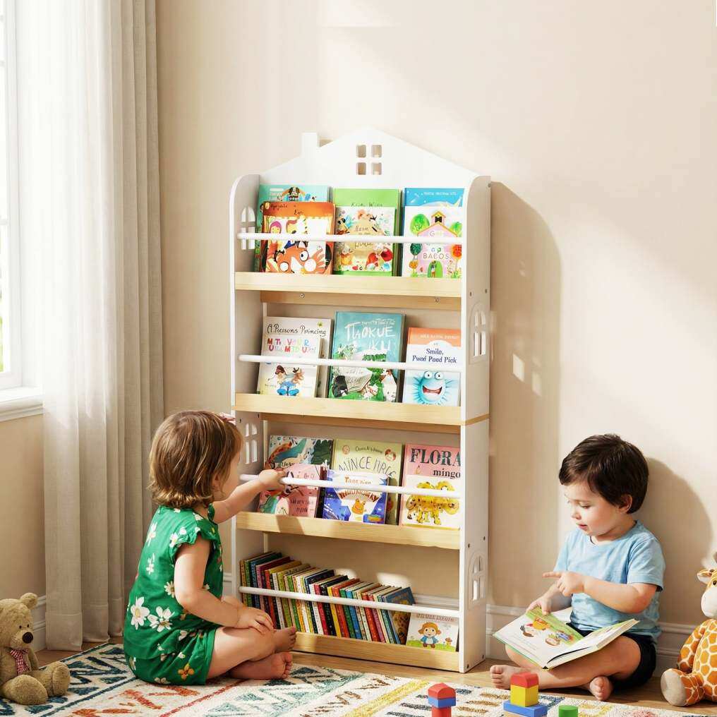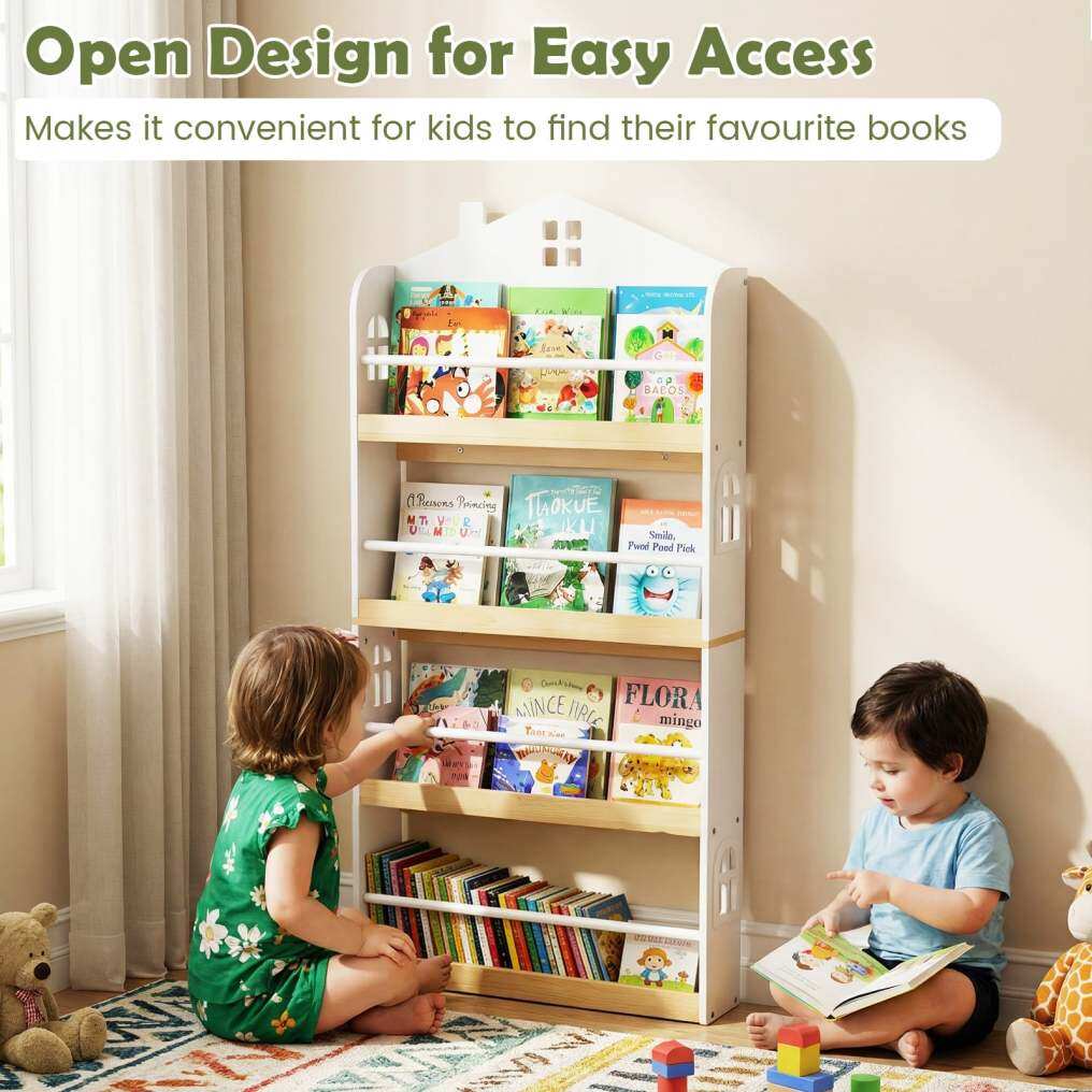 ● 4-Tier Book Storage Space: 4-tier kids bookshelf provides enough space to neatly organize and showcase your child's books, including picture books, storybooks, textbooks, comics, and magazines. Ample storage space keeps their room tidy and clean.