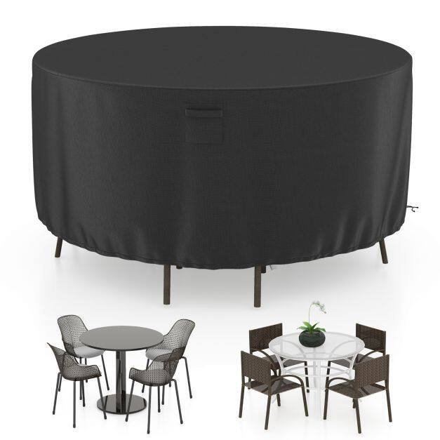 Flexible Fit for More Sizes: Sized at 158 x 70/181 x 70/213 x 70 cm (D x H), the patio furniture cover can match most round table chair set with a max diameter of 158/181/213 cm. But the coverage depends on the furniture dimension, especially the chair depth. Please measure the size of your furniture before purchasing.