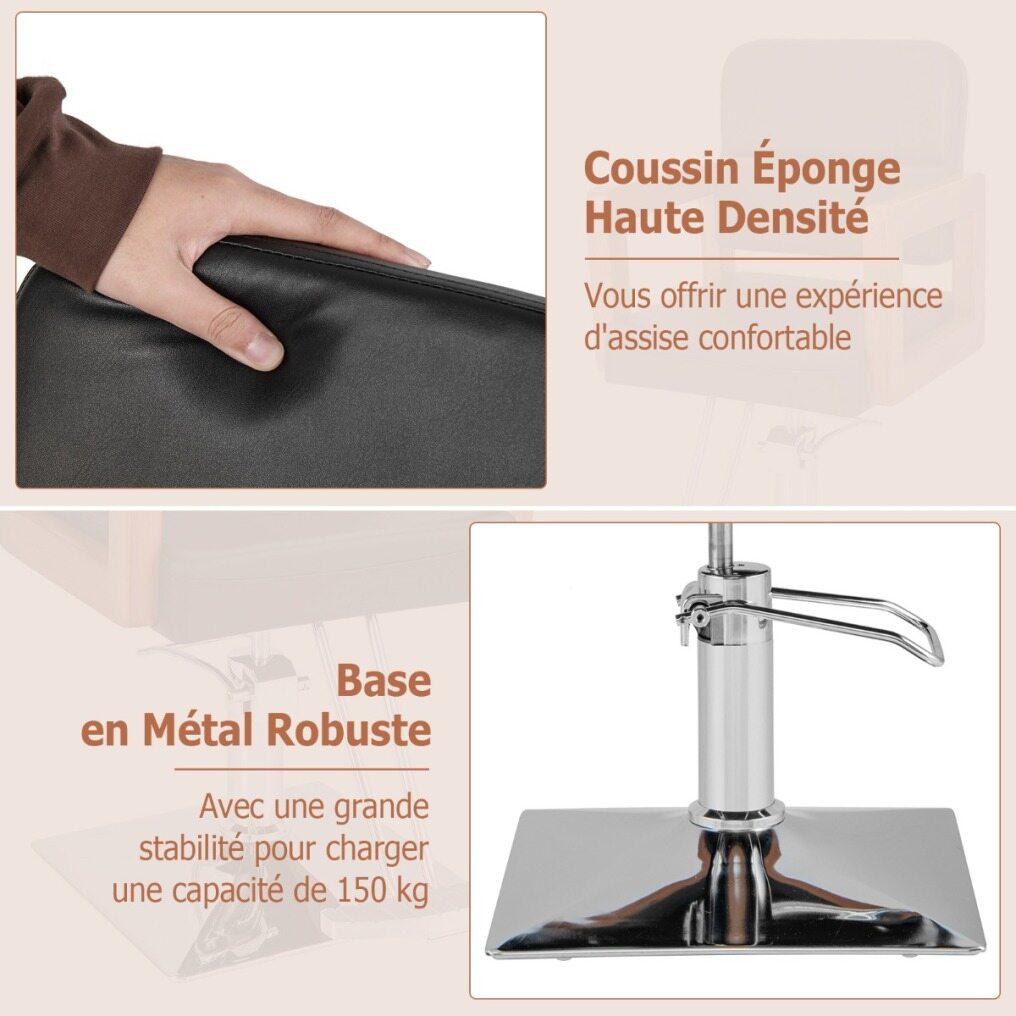 Selected Material and Sturdy Frame: Covered with high quality PVC leather, the surface of this hydraulic barber chair is waterproof, wear resistant and easy to maintain. In addition, the rust-proof electroplating base with heavy-duty hydraulic pump is strong enough to load up to 150kg.