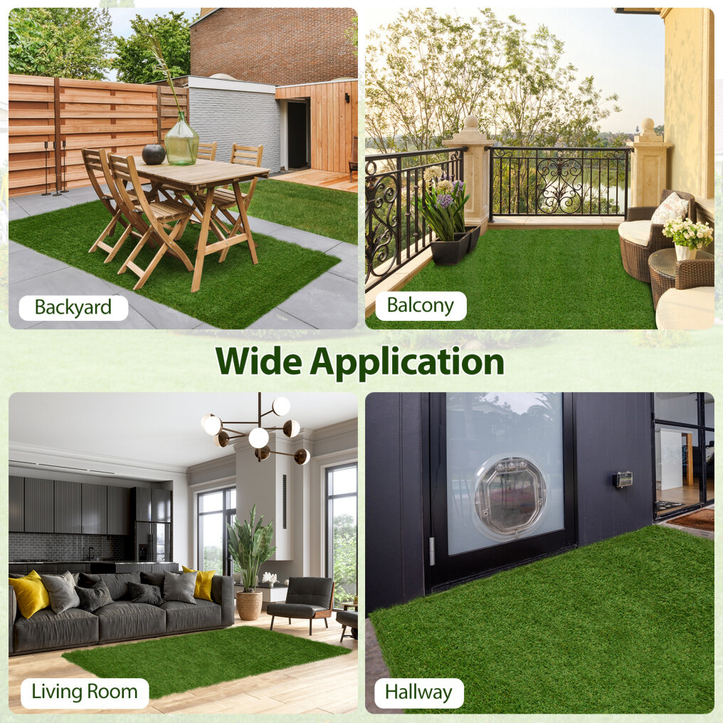 ● Wide Application: This fake grass rug is ideal for use as a pet training mat, door mat, indoor flooring, playground surface, balcony decoration, backyard enhancement, poolside accent, park landscape, and more. Also, it is flexible to cut for desired shapes, offering versatility for different spaces and purposes.