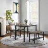 Our 4-piece modern dining table set is an ideal addition to your home for family gathering and friend get-together. Comes with a spacious table, a large bench and 2 ergonomic chairs, this kitchen dining set allows 4 persons to sit together. Comes with durable MDF and sturdy metal frame, this table set ensures high stability and long-term use. Its industrial style can match with different indoor decorations. Also, this modern set can be used as a working desk in the study room and a dresser in the bedroom, which can meet all your needs. Besides, the chairs and bench can be tucked under the table, which is ideal for limited living space to use. In a word, this kitchen table set provides you with both practicality and attractiveness.