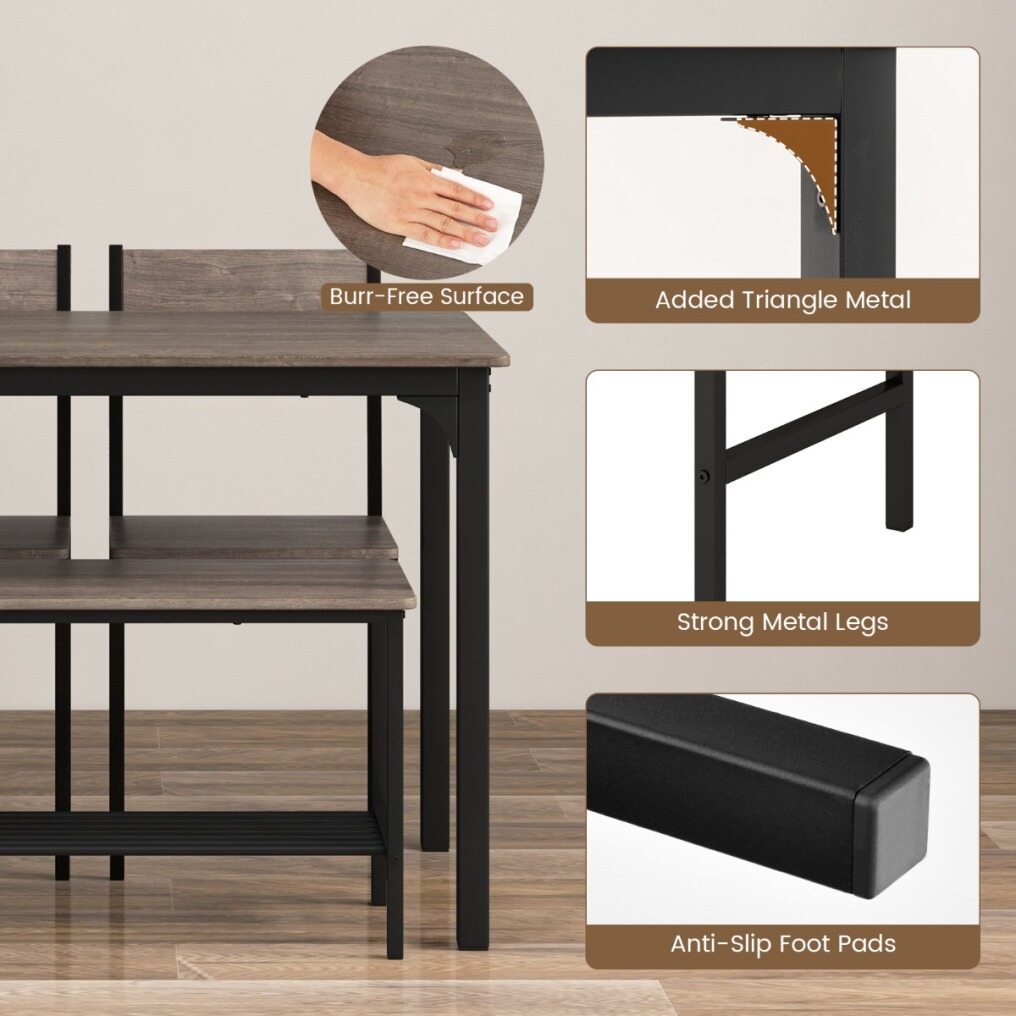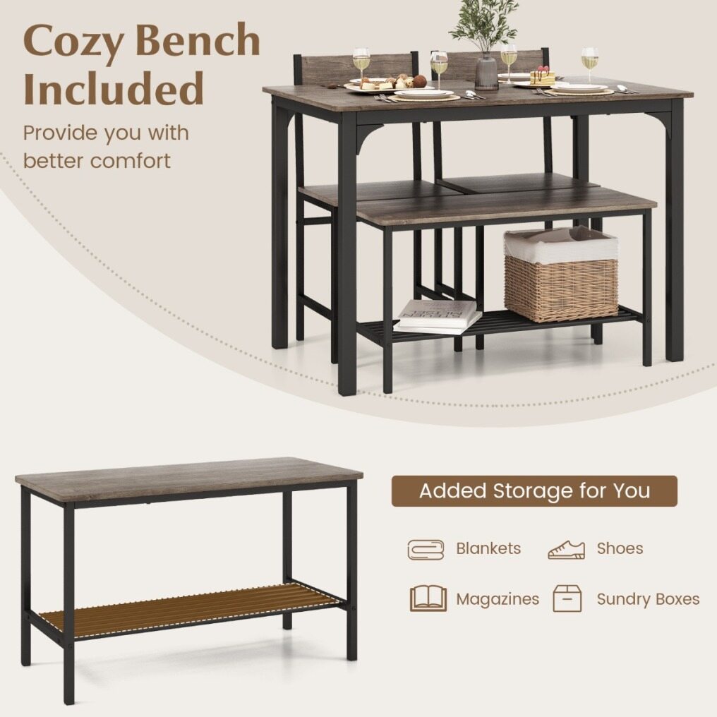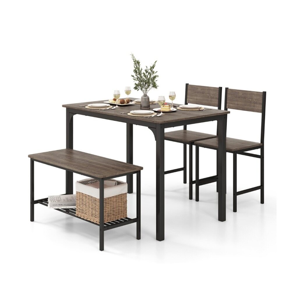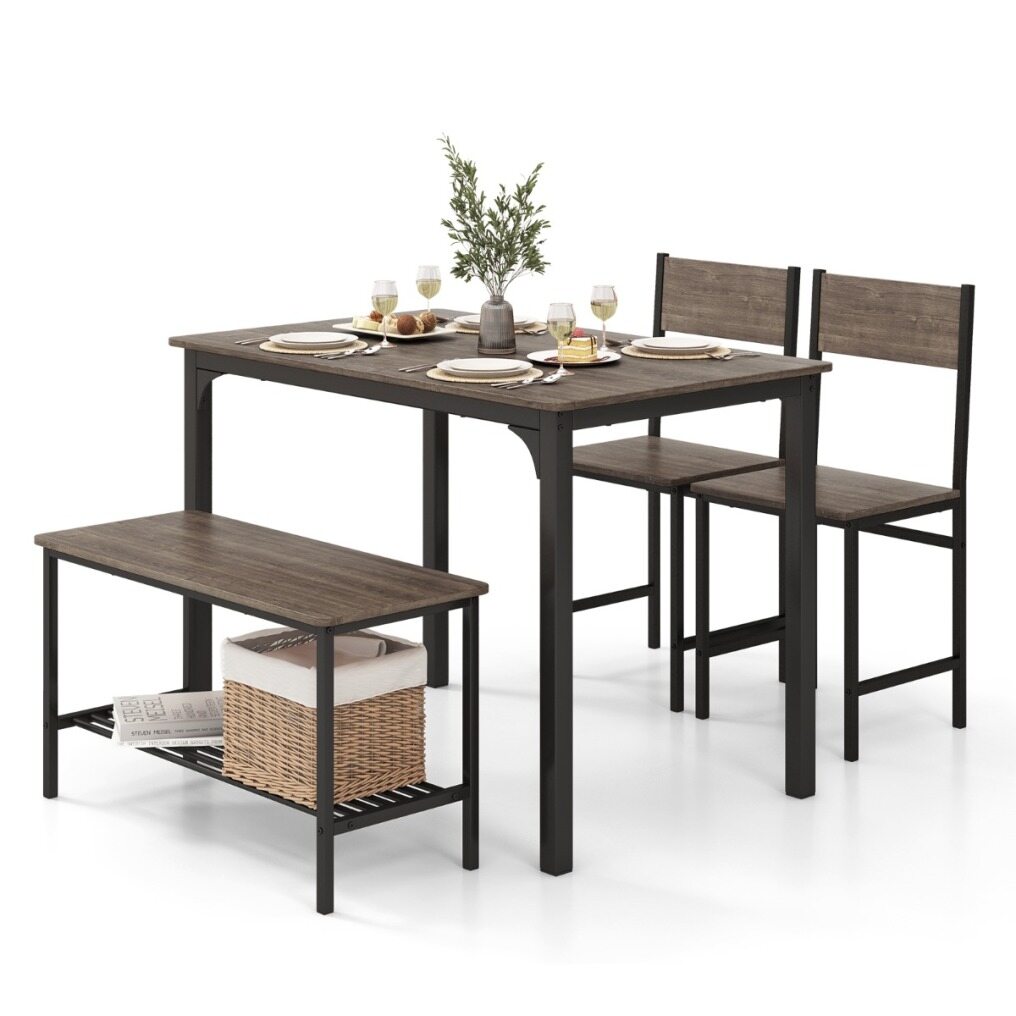 4-piece dining set includes a table, a bench and 2 chairs