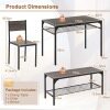 Space-saving Design: Designed with a space-saving mindset, this 4-piece compact dining table set is a smart choice for apartments or limited dining spaces. The bench and chairs can be easily tucked under the table when not in use, maximizing your floor space.