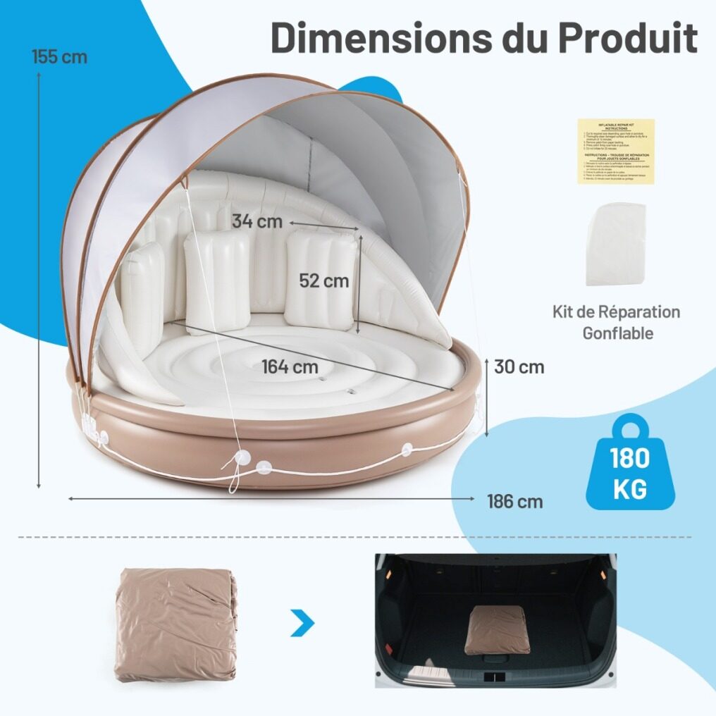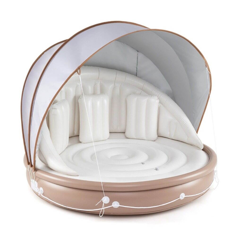 ● Portable Design and Dimensions: When not in use, it can be quickly deflated and folded into a compact size for hassle-free storage. The lightweight design allows you to enjoy your floating oasis wherever you go. The overall dimensions are 71" x 71" x 63" (L x W x H).