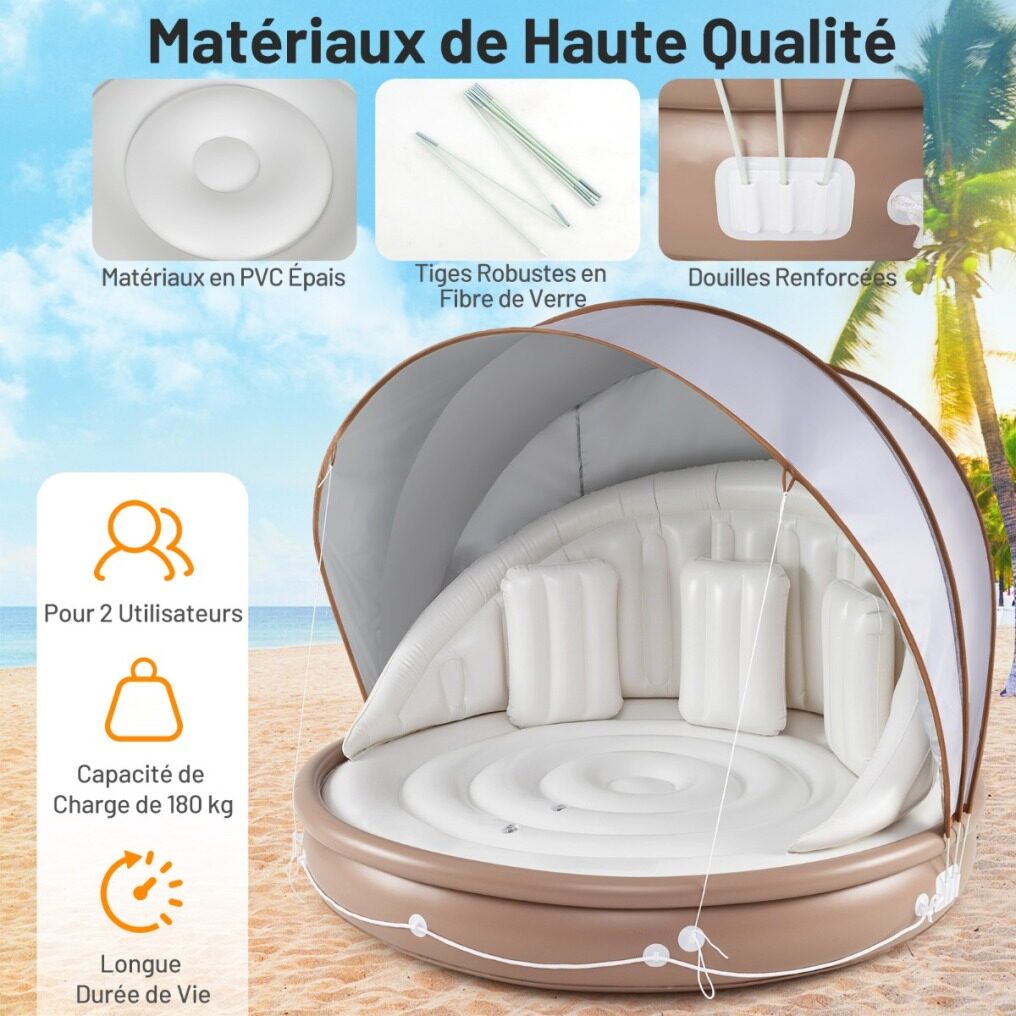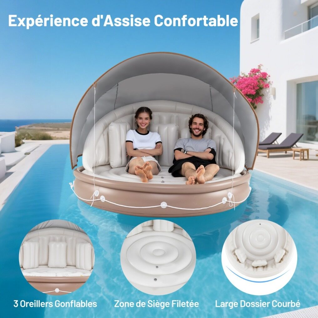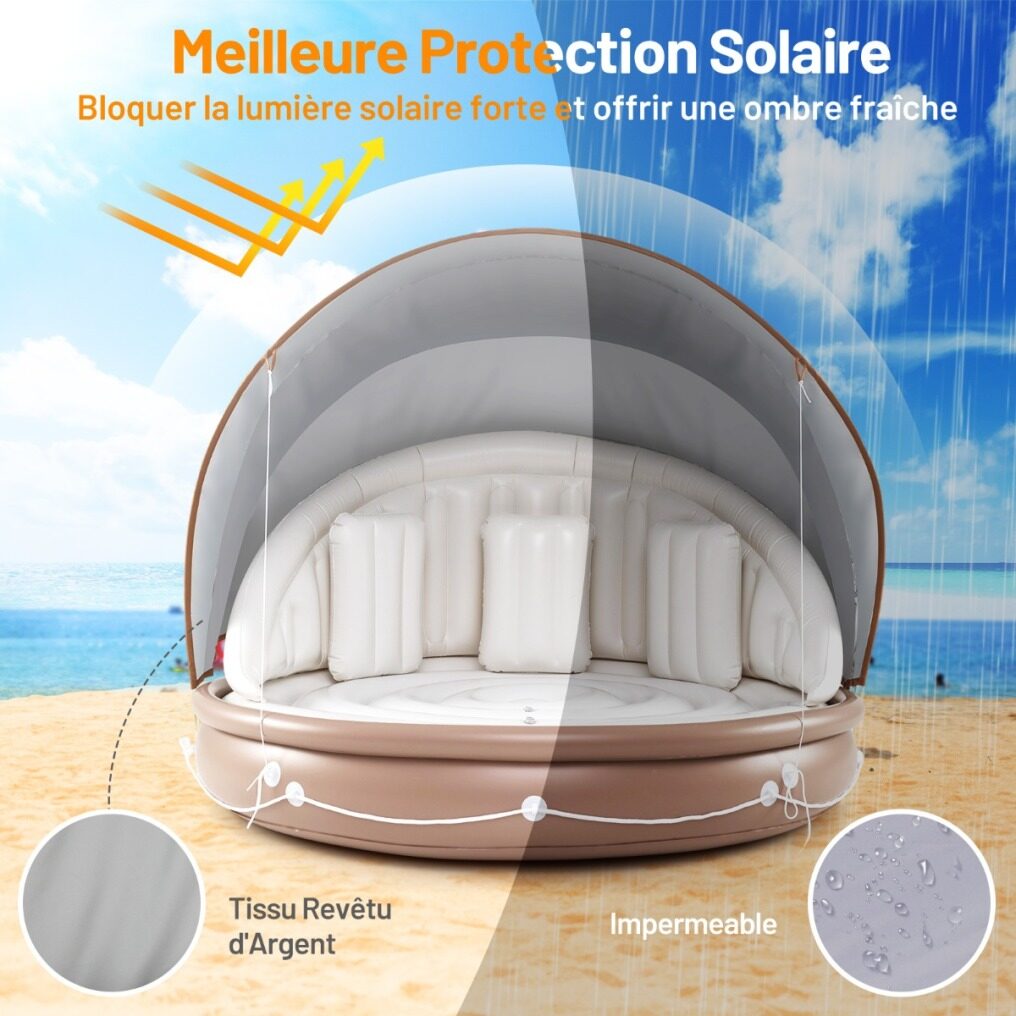 ● Retractable and Removable Sunshade: Crafted from premium silver-coated fabric with SPF 50+ protection, this floating island's retractable canopy offers ultimate sun protection. When you're ready to soak up the sun, simply remove the canopy for a seamless transition to sunbathing mode.