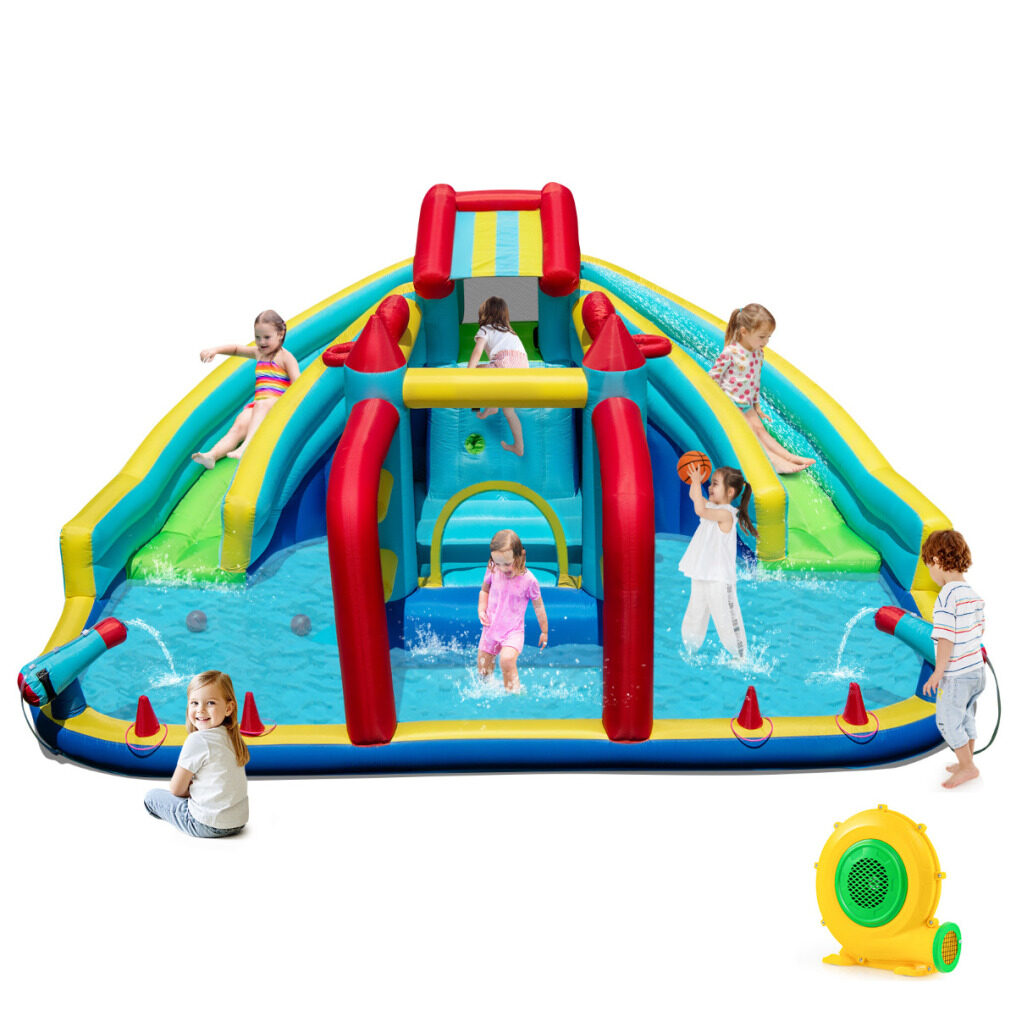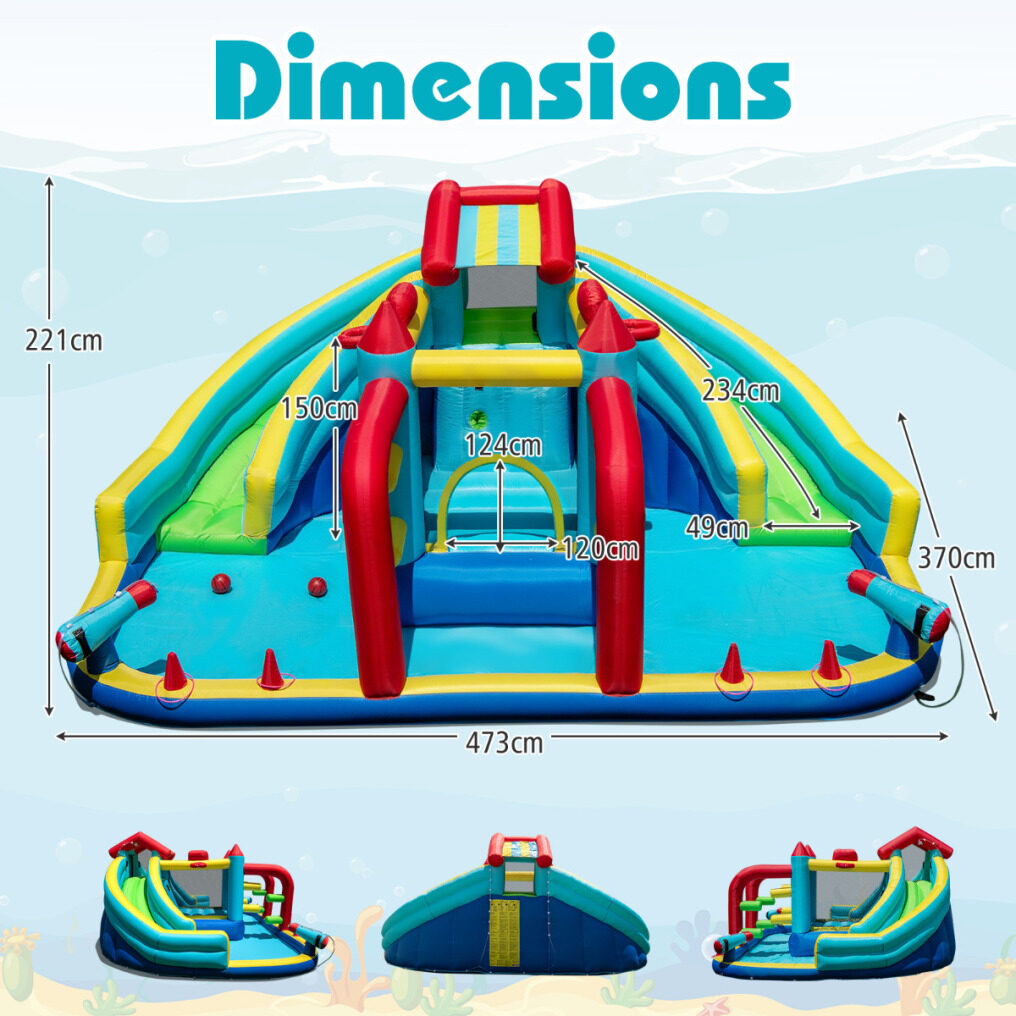 Perfect Gift Choice: The water park complies with ASTM and CPSIA safety standards, suitable for kids aged 3-12 years old. Available for both wet and dry fun, water slide bounce house will be a big hit among kids in birthday party, family gatherings, and holiday events!