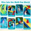 Complete Package and Easy Setup: You can inflate the jumping house in minutes and wrap the water hose for a cool splash. The carrying bag and repair kit facilitate storage and maintenance, while the 2 basketballs, a hand pump, and 8 tossing rings for immediate game fun.