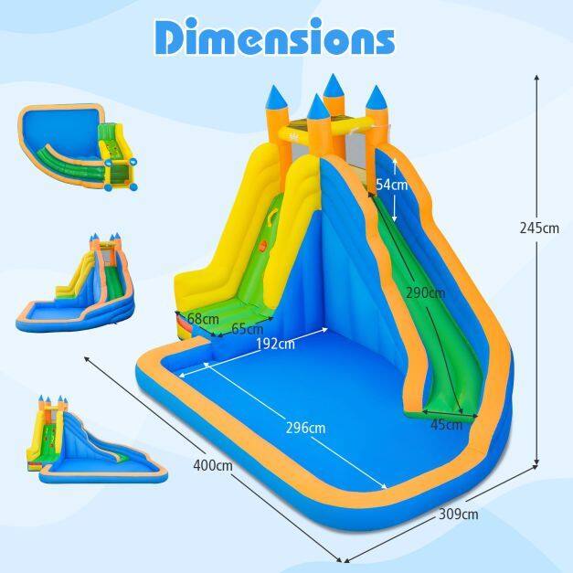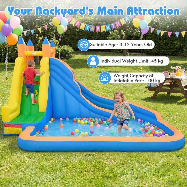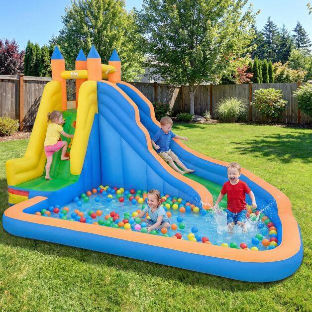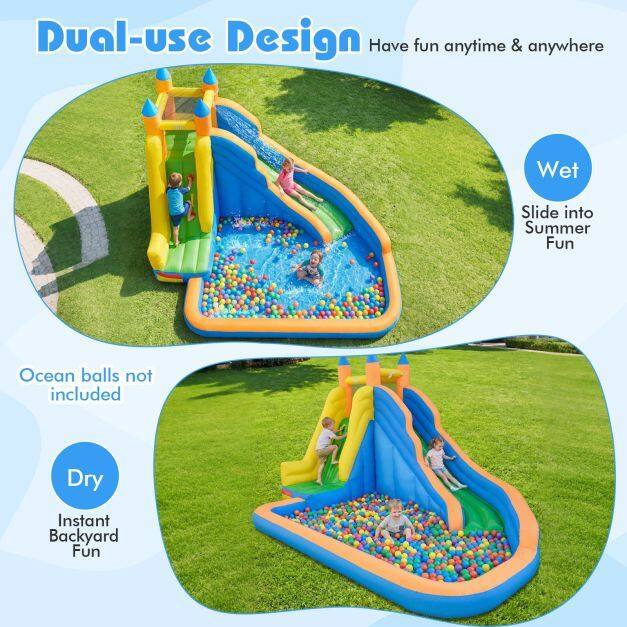 Wet or Dry Year-Round Play: Dual-use wet or dry design lets you set it up as a water play center in summer or a dry slide and climbing park in cooler months. Whether you're beating the heat or keeping kids entertained year-round, this backyard inflatable water slide brings big fun to home parties and weekends.