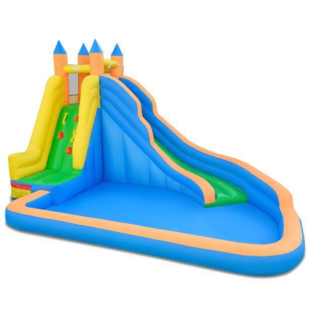All-in-One Splash Adventure: This inflatable water park combines a spacious splash pool, a curved water slide, and a challenging climbing wall to keep kids active, engaged, and excited for hours. Designed to fully motivate your child to climb, slide, and splash, this inflatable water slide turns backyard play into a daily adventure.