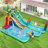 ● Wet & Dry Combo: Designed to keep the excitement going, this water park features dual long slides that descend into a splash pool and a water cannon for playful battles. Whether used with water hose for those warm summer days or as a dry slide for cooler occasions, it offers endless fun in any setting.