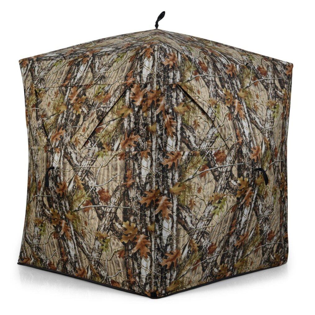 Perfect camouflage: The hunting blind features a camouflage pattern and blends seamlessly into natural landscapes to ensure maximum concealment. It also features a one-way opening door for easy, unnoticed entry and exit.