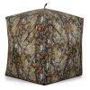 Silent Windows: Measuring 140 x 140 x 170 cm (L x W x H), the ground tent features flat shooting windows that provide a wide, unobstructed view for wildlife observation. The zipperless window opening allows for monitoring and shooting without disturbing wildlife.