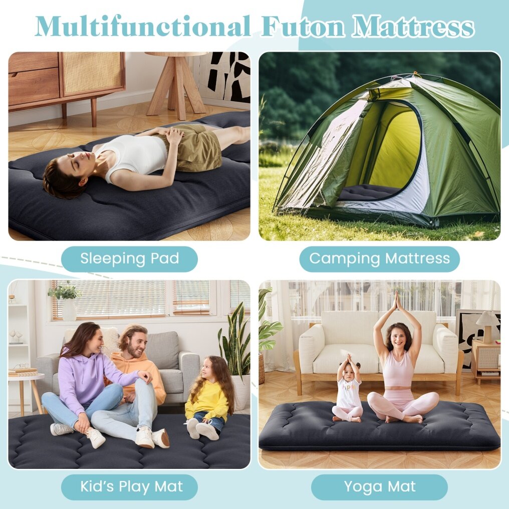 ● Multifunctional Futon Mattress: The foldable tatami mat can be used in multiple places, such as a comfortable sleeping pad for guests, a playful and safe floor lounger for kids, an essential item for your camping and a yoga mat for exercisers.