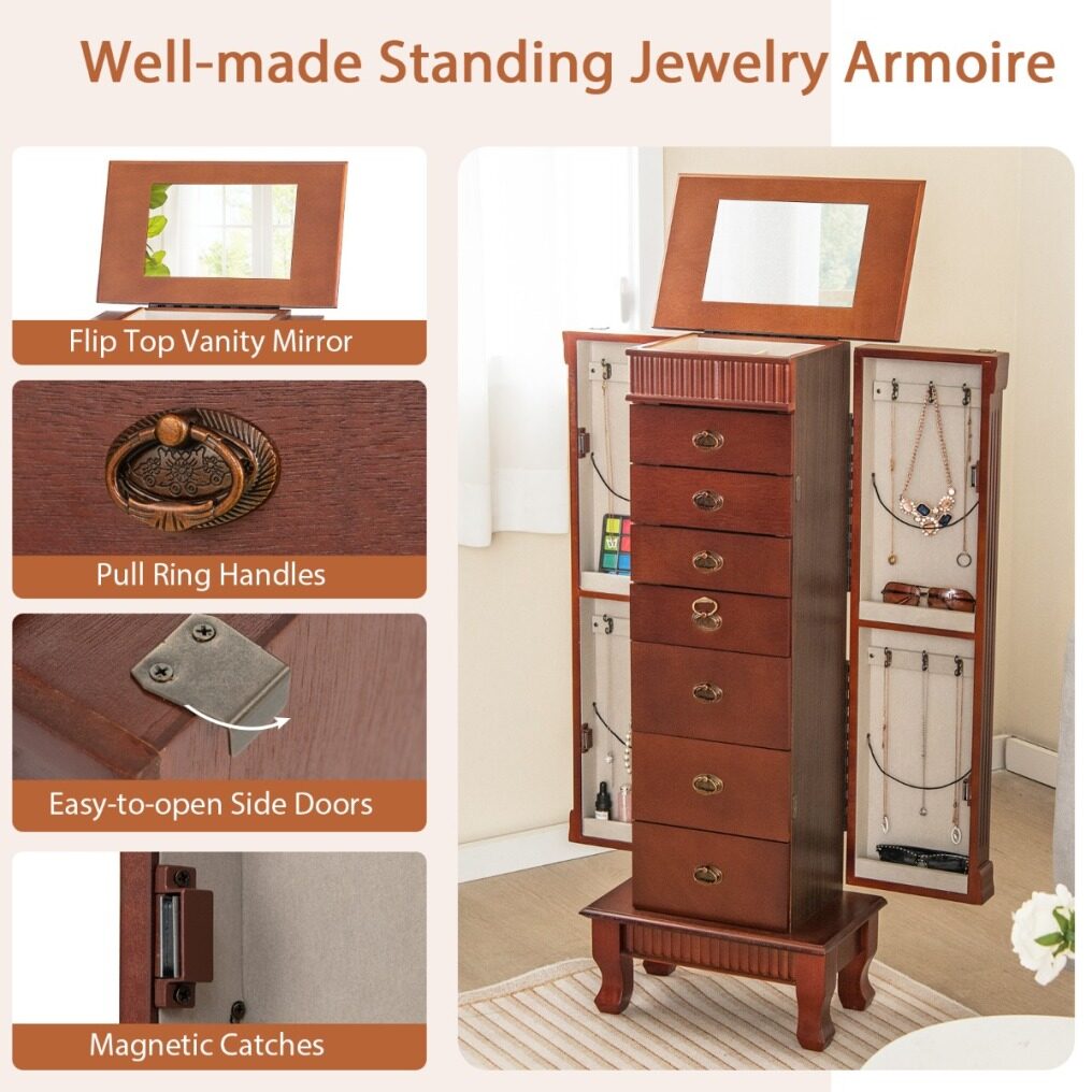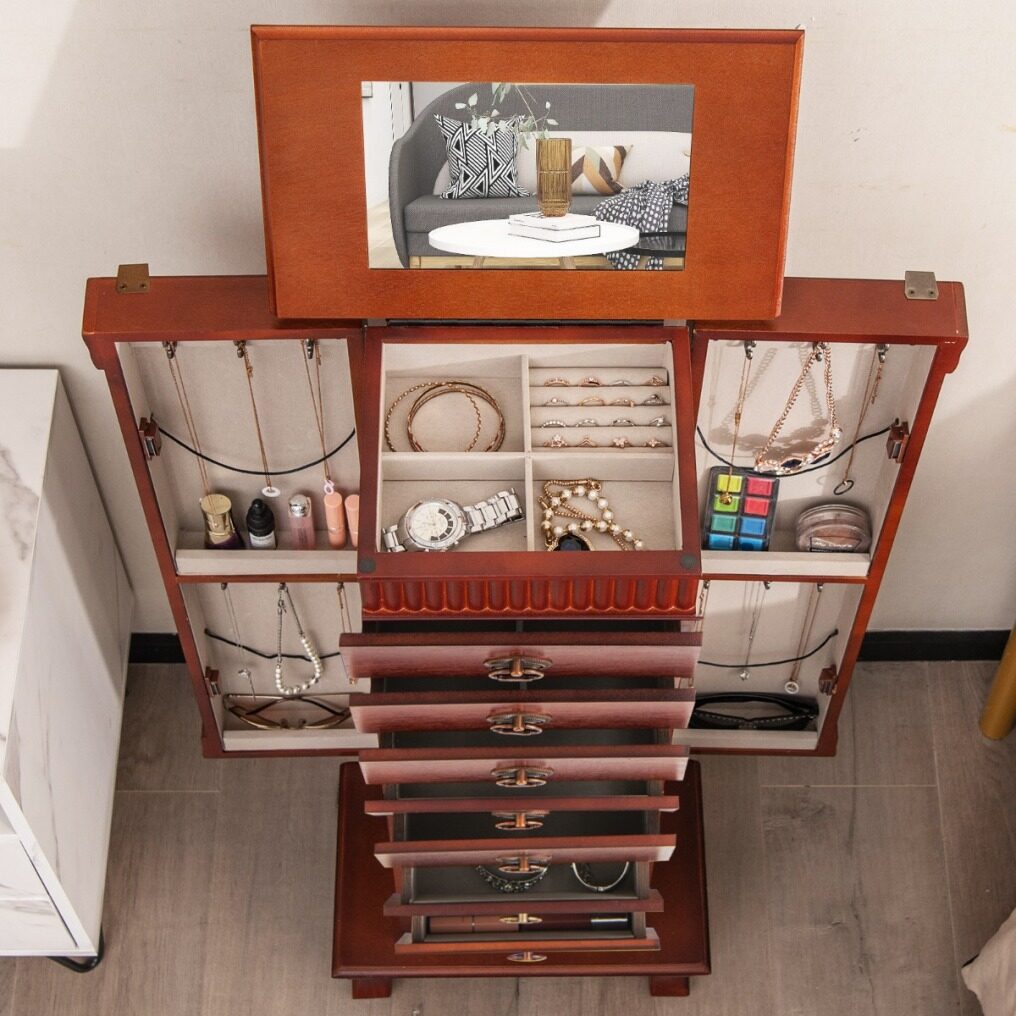This well-made standing jewelry armoire will be a perfect gift for your mom, wife or anyone you love!