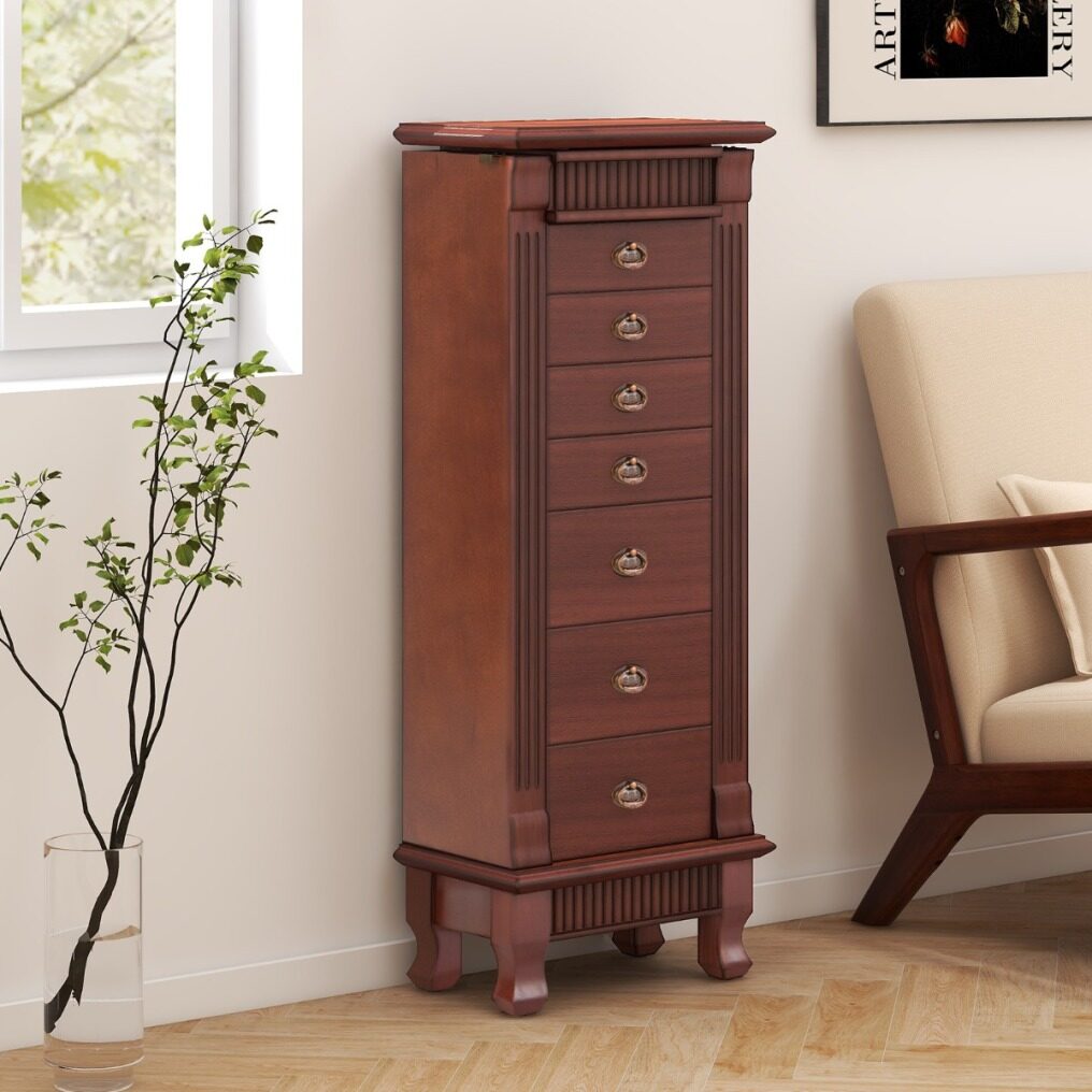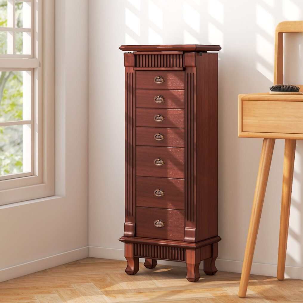 Add Charm to Your Home: This standing jewelry cabinet with vintage style will be an eye-catching addition to your bedroom, dressing room, living room and more. The pull ring handles make it easy to open the drawers while adding a touch of elegance.