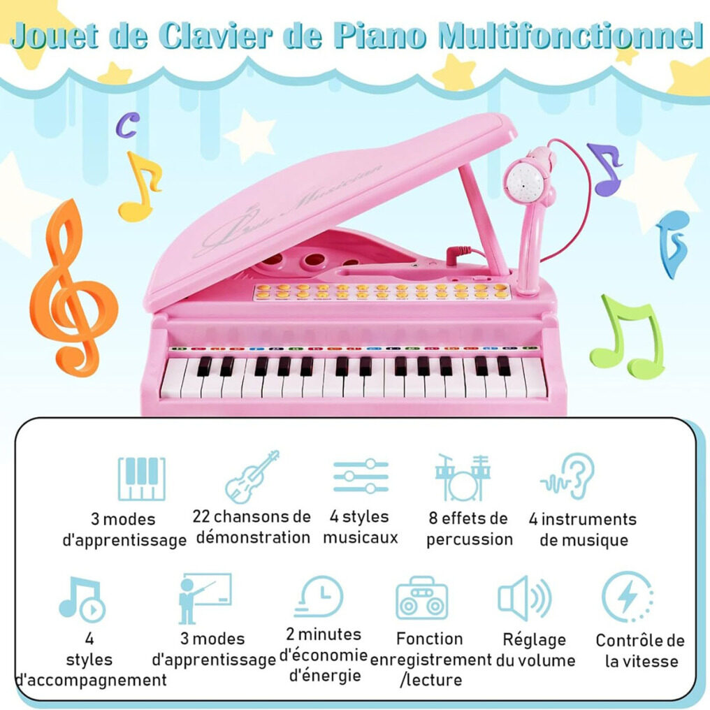 【31-Key Children's Piano】This children's piano features 31 black and white keys, 22 demo songs, 4 musical styles, 8 percussion effects, 4 instrument sounds, a 2-minute power-saving mode, recording/playback functions, and volume control. These features will bring more fun to your child.
