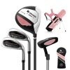 ● Cavity Back Irons: The stainless steel #7 and #s irons is designed with low center of gravity for better stability. The #7 iron provides excellent distance and control, while the #s iron delivers higher loft for approach shots. The graphite shafts and rubber grip provide a comfy and secure hold.