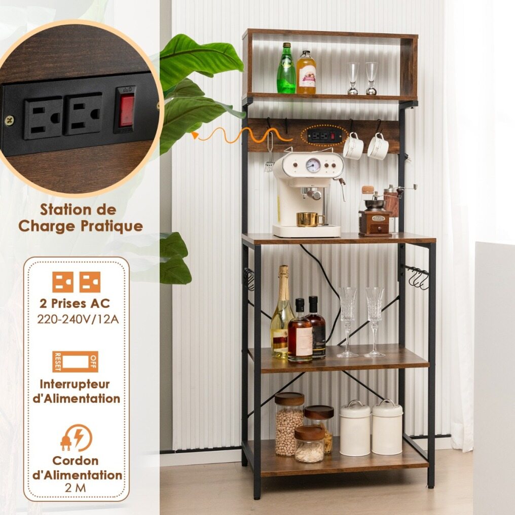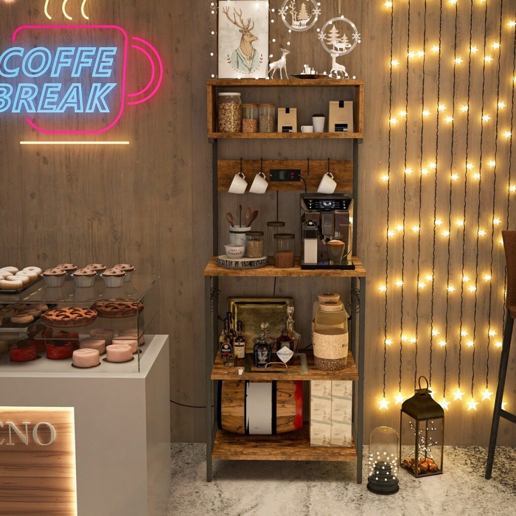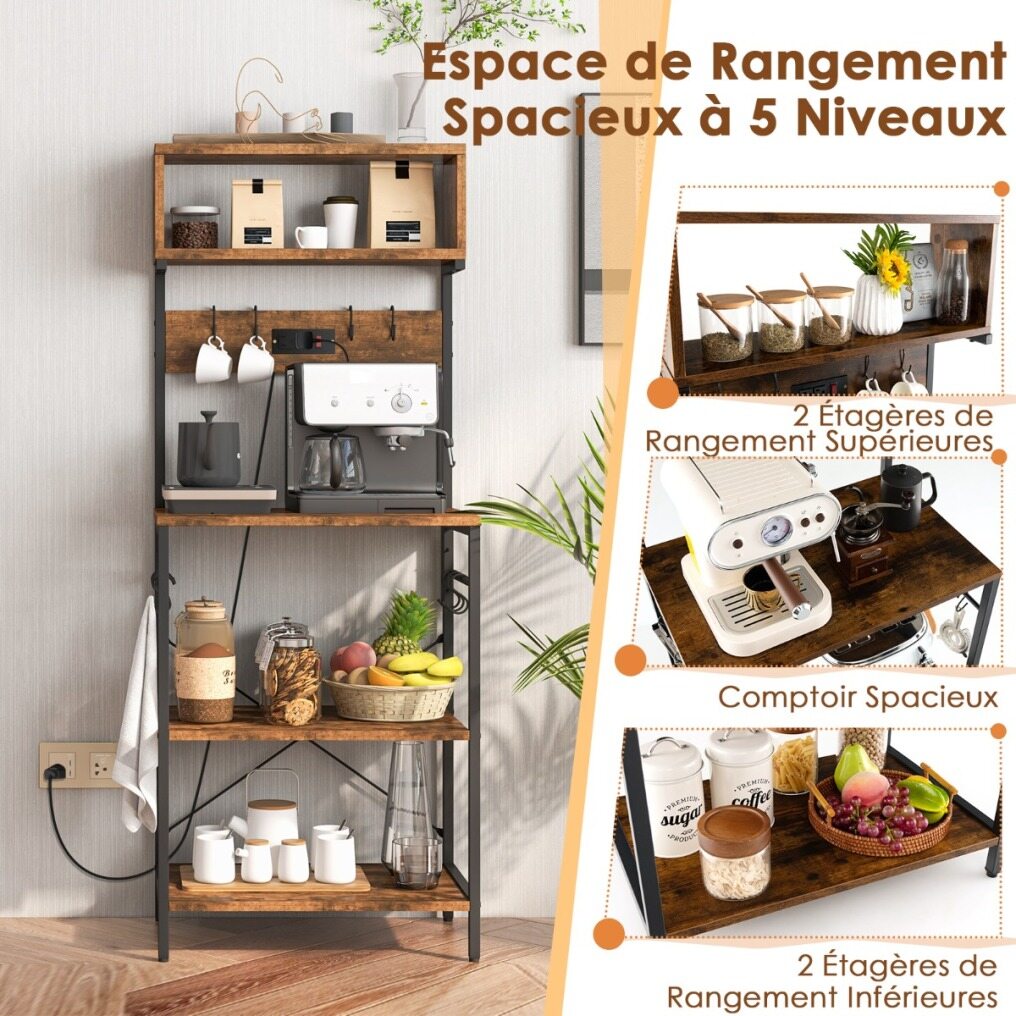 【5-Tier Storage Space】This kitchen rack offers plenty of storage options, with 4 open shelves and a spacious countertop to keep your kitchen organized and clutter-free. From pots and pans to dishes and appliances, everything has its place.