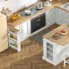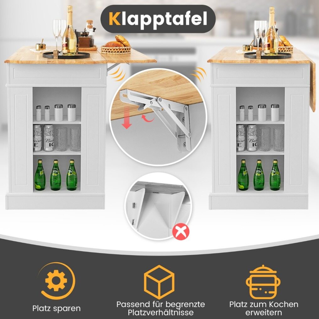 More than just a kitchen island : Thanks to its foldable rubberwood worktop, this piece of furniture not only serves as a kitchen island, making a big difference in your kitchen, but can also be used as a dining table – the perfect place to enjoy delicious meals. The multi-purpose cart can be used as a storage shelf or mobile serving cart in the kitchen, laundry room, or living room.