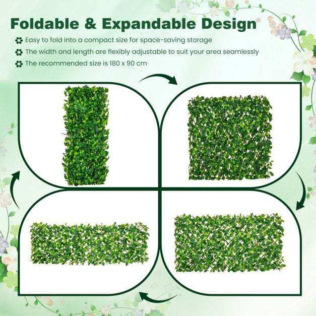 Indoor and Outdoor Application: Not only does this artificial hedge protect your privacy beautifully outdoors, but it also acts as a charming decoration piece that can be hung on any wall or in various locations around your home. Additionally, its proper gaps ensure adequate air circulation.
