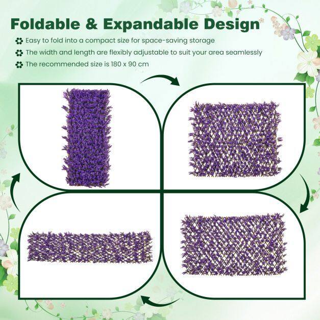 Our expandable fence privacy screen is crafted from natural willows and 100% PE leaves, which is not only odorless and safe but also resistant to sun and water, ensuring long-lasting durability without fading. Besides, the leaves mimic the appearance of real eucalyptus leaves, which are designed to create an enchanting outdoor ambiance, transforming your space into a natural oasis. Thanks to its flexibly expandable design, it ensures a seamless fit wherever you place it. Whether you want to create secluded spots on your patio, add privacy to balconies, divide garden sections, or adorn interior spaces like offices or living rooms, this decorative faux eucalyptus fencing panel offers a convenient and maintenance-free solution for privacy and decoration.