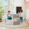 Multifunctional Kids Art Center: This multifunctional art centre consists of a table, a bench and a double-sided art easel for drawing, playing, learning or eating. One side of the easel is the easy-to-write chalkboard, while the other side is the magnetic whiteboard. Besides, you can adjust the easel height to suit kids of different heights. It has 360-degree play for multiple kids to use at the same time.