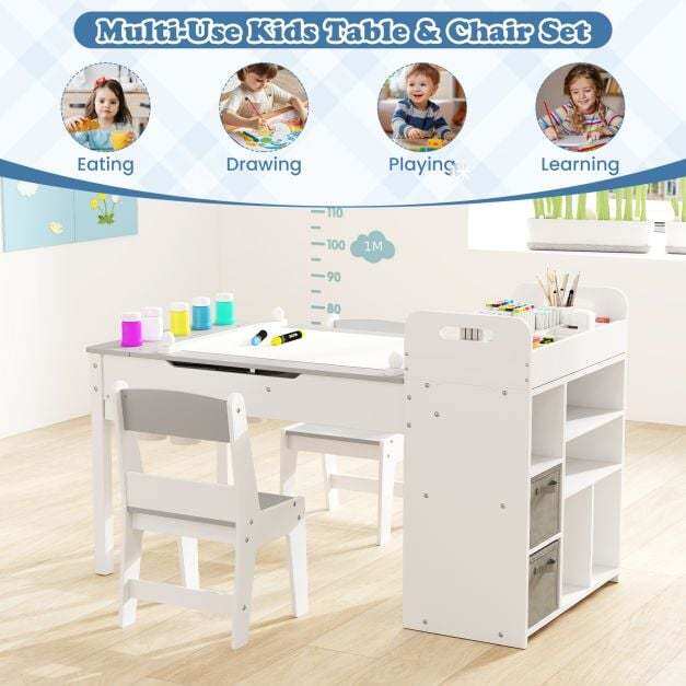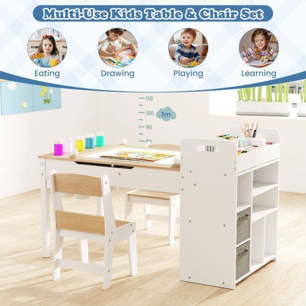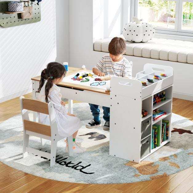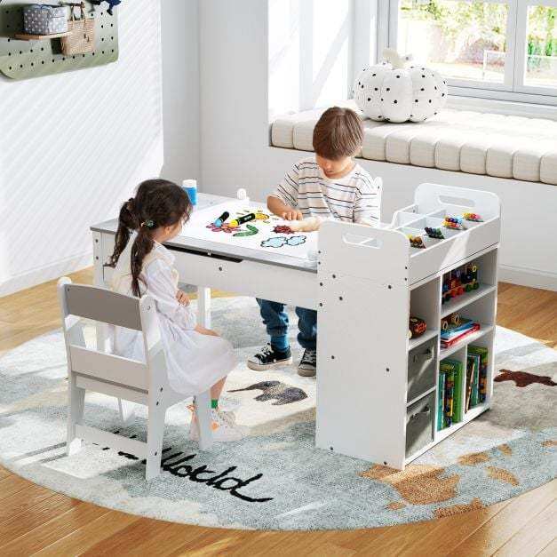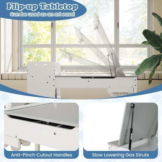 Activity Center: This kids art table features a paper roll holder and a unique flip-up tabletop that doubles as an art easel, making this multi-use kids table and chair set perfect for drawing, crafting, eating, playing or learning.