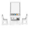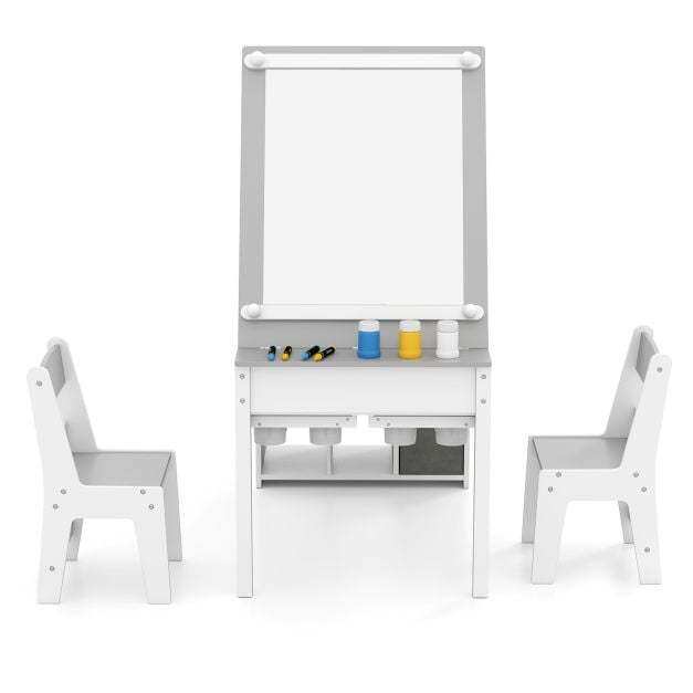 Featuring a flip-up tabletop that transforms into an easel and various storage compartments, this table organizes art supplies efficiently. The integrated paper roll dispenser offers endless creativity, with a roll of paper included for immediate use. Safety is prioritized with this ASTM and CPSIA compliant kids desk and chairs set, ensuring a sturdy and safe workspace.
