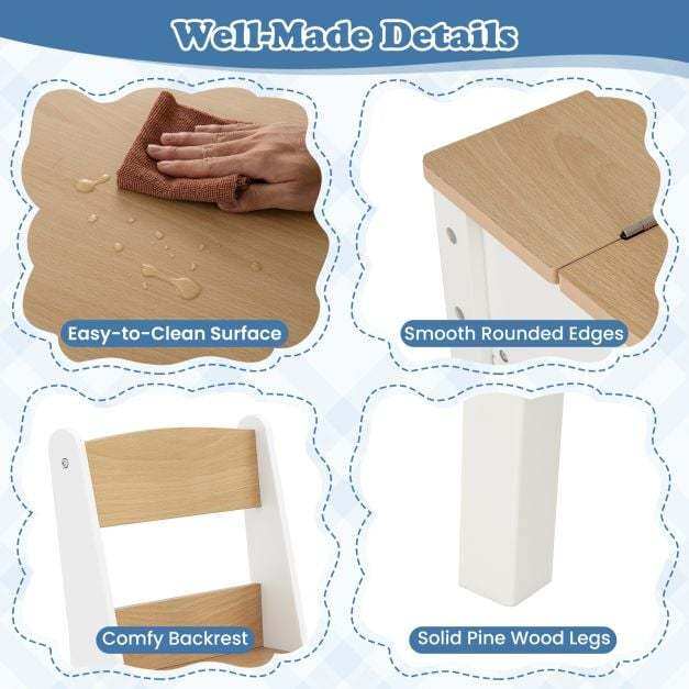 Built with Safety in Mind: This ASTM and CPSIA compliant art table and chairs set is crafted with a sturdy construction and kid-friendly materials to ensure a safe and robust workspace for children’s activities. Weight capacity of each chair: 165 kg.