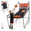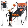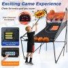 This electronic arcade basketball machine comes with 8 exciting game modes for everyone to enjoy and challenge their basketball skills. This game machine also features electronic scoring with a bright LED display scoreboard, making it easy to keep track of your scores in real-time. And to add an extra level of excitement, the goal scoring sound effects create an immersive and thrilling gameplay experience. Convenience is also a top priority with this game. Its quick folding design allows for easy storage, making it perfect for small spaces. Just remember to insert the secure locking pins for added safety.