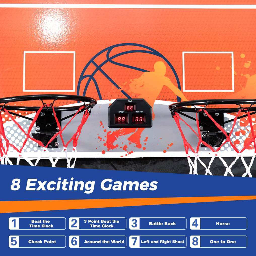8 Playing Modes for More Fun: This electronic arcade basketball game boasts 8 exciting game modes for 1-4 players. Beat the time clock, 3-point beat the time clock, battle back, horse, check point, around the world, left and right shoot and one to one. There's a mode for everyone!