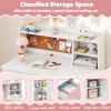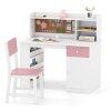 Offers Classified Storage Space: The study desk has upper shelves, 3-layer side shelf, storage drawer, and single door cabinet, allowing kids to arrange their books, clocks, toys, or other items. Kids can also place their stationary and art supplies on the large tabletop to keep them accessible.