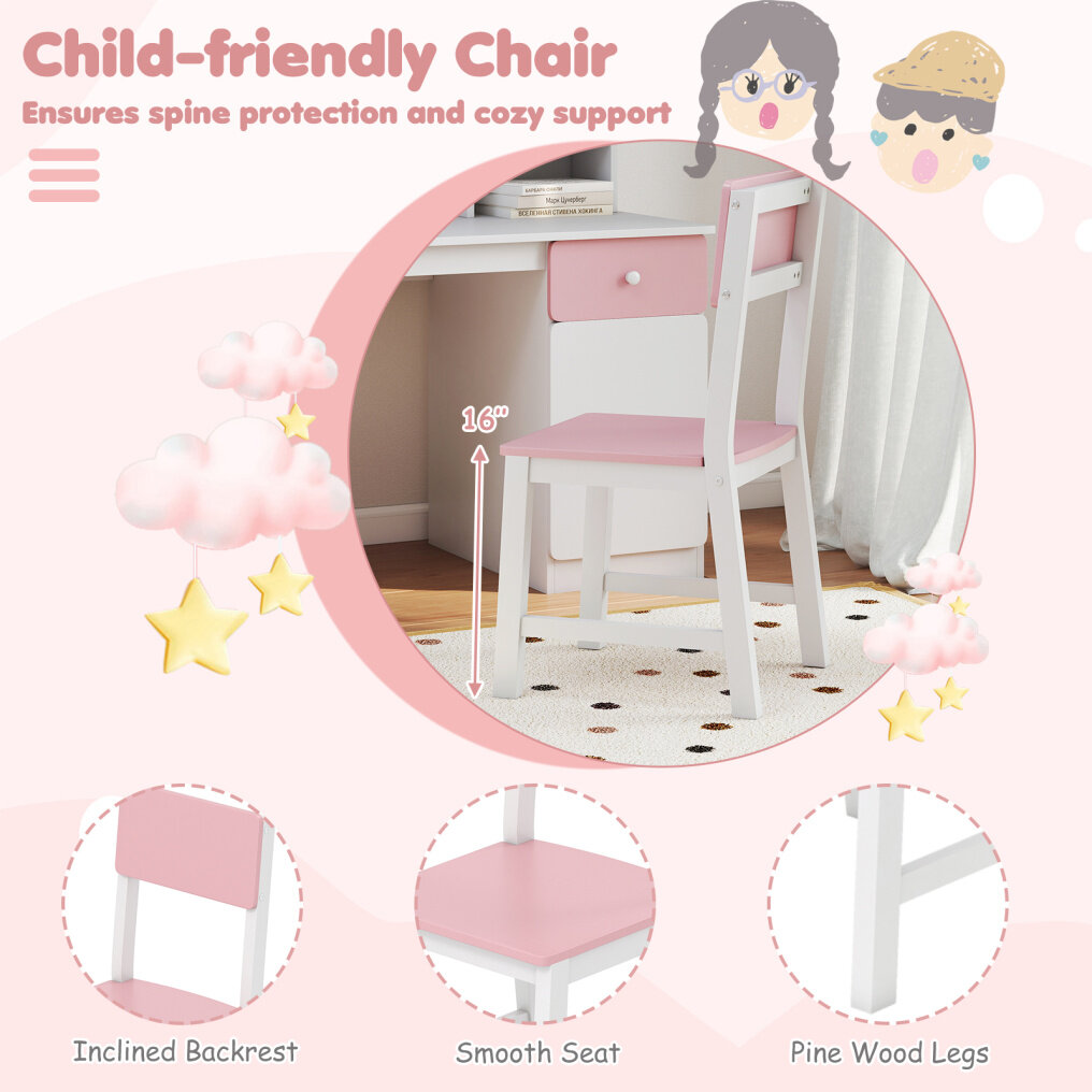 Perfect Gift for Your Little One: The study desk and chair set will be an ideal gift for both boys and girls. With simple colors and clean lines, the table and chair can blend into various room styles. The rounded corners and splinter-free edges prevent accidental bumping or scratching. The easy-to-clean surface makes cleaning a breeze.