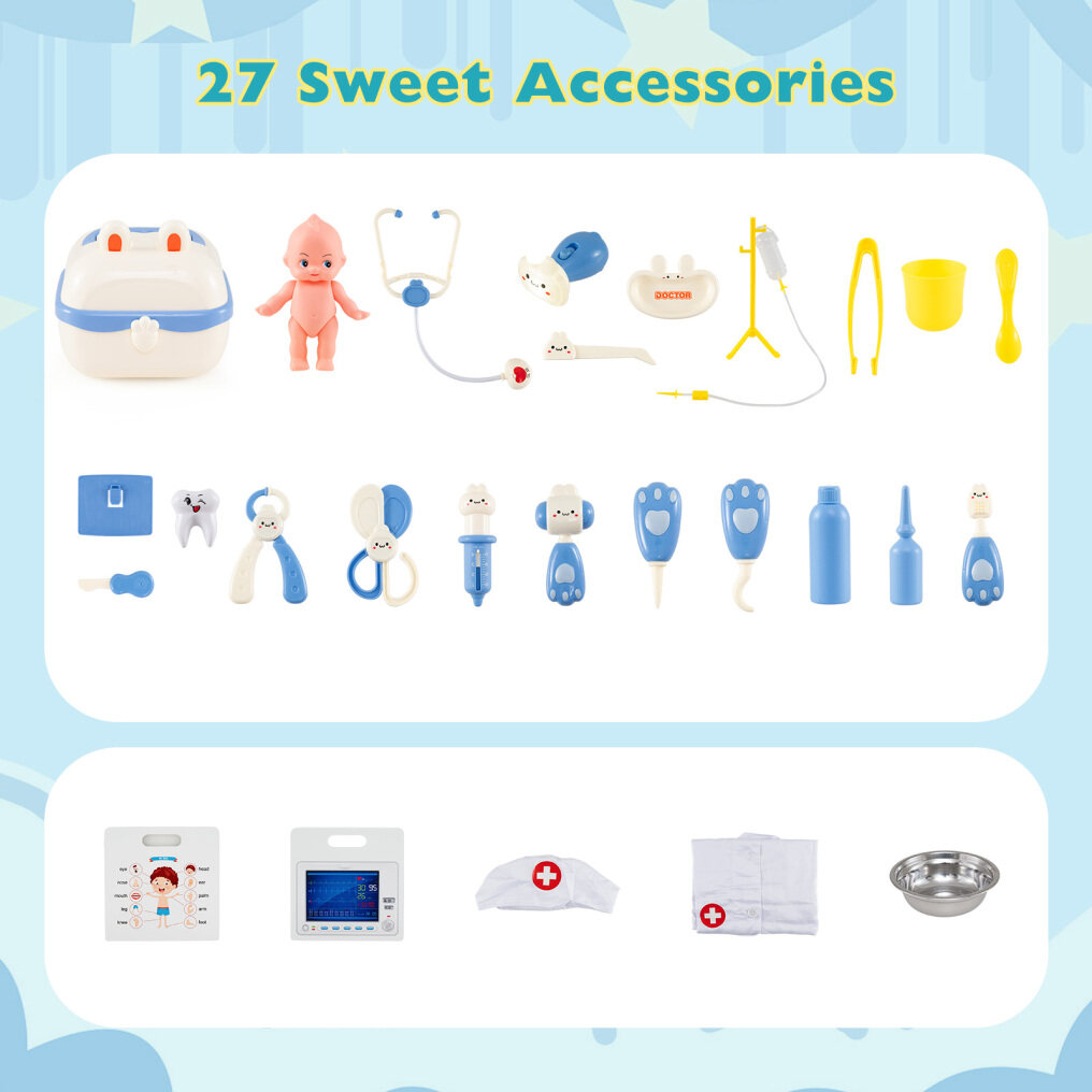 ● Endless Medical Adventures: Fuel your child's curiosity with 27 diverse medical tools designed for a variety of pretend play scenarios. The pretend doctor kit allows kids to simulate giving injections, perform tooth extractions, set up an infusion, listen to heartbeats with a stethoscope, and more.