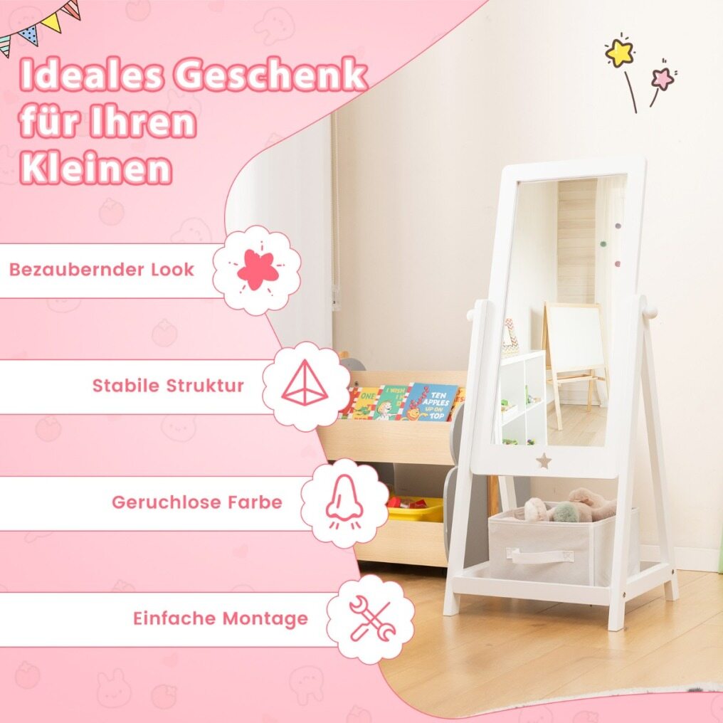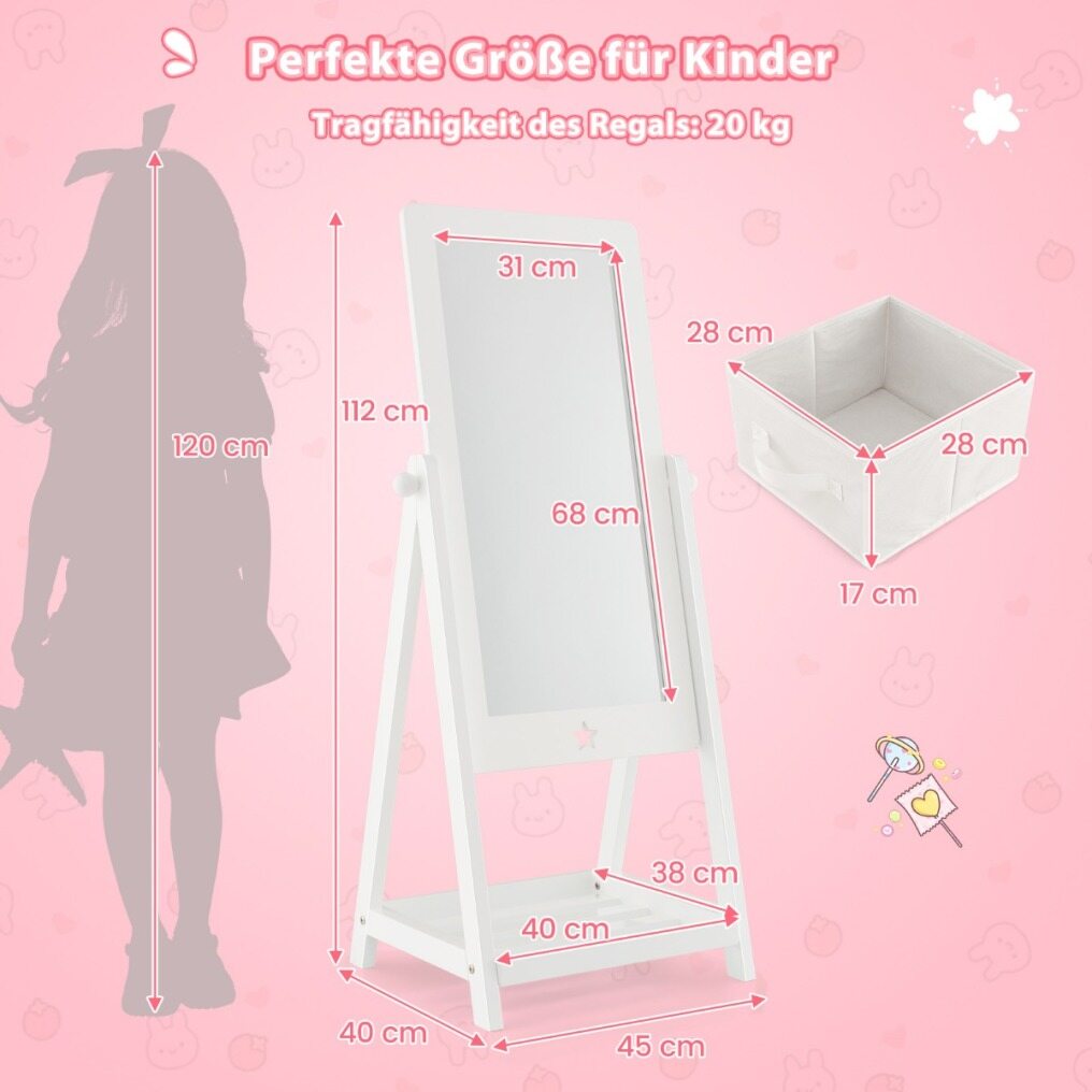 ● Ample Storage Space: The standing mirror comes with 2 side hooks, a removable and foldable storage bin and bottom storage shelf, providing convenient and roomy storage space for kids' toys, shoes, bags, hats and more.