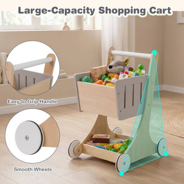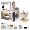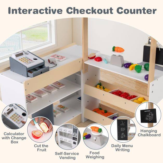 ● Realistic Supermarket Play: The wooden supermarket is available in 2 interactive modes: sales mode, where kids can role-play as a cashier, and shopping mode, which includes a storage cart. The realistic checkout counter with a cash register, a scanner gun equipped with light and sound effects, and a credit card, provide an authentic shopping experience for children.