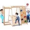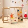 ● Robust Build Quality: Built with a stable trapezoid structure and thickened panels, this wooden climber playset supports up to 330 lbs, making it sturdy enough for energetic play. Additionally, floor-fixing accessories are included to keep the gym safely in place.